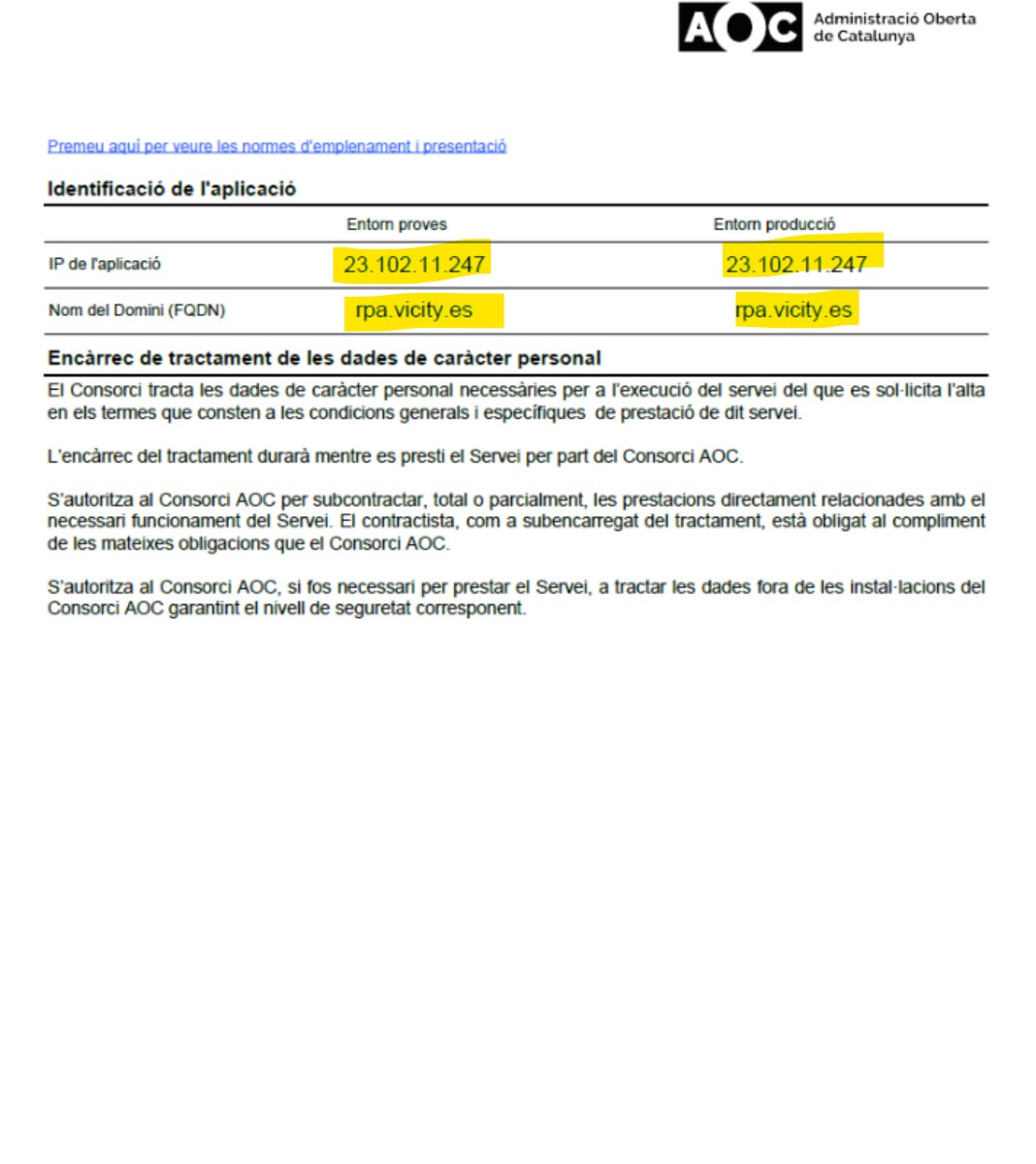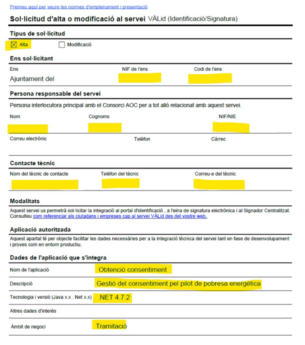 En aquest document trobareu dues plantilles de les dades que s'han d'omplir per formalitzar la petició del servei Vàlid de l'AOC.